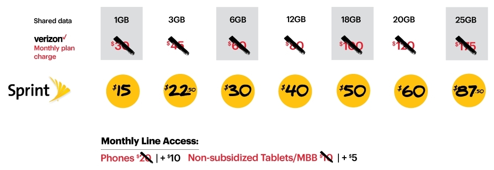 Here are Sprint-made images showing the discount you would get off of each carrier’s plans: