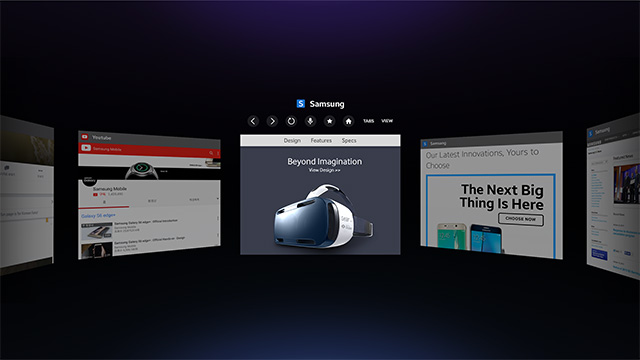 Utilizing voice recognition, as well as a virtual keyboard, users will skim webpages, browse through multiple tabs, and be able to view 360-degree videos all through the web. Essentially, this allows content to be made available more quickly, instead of content having to be downloaded via an app onto the device itself. In addition, a Gaze Mode allows users to simply stare at a menu object for it to be selected, instead of having to use finger input.