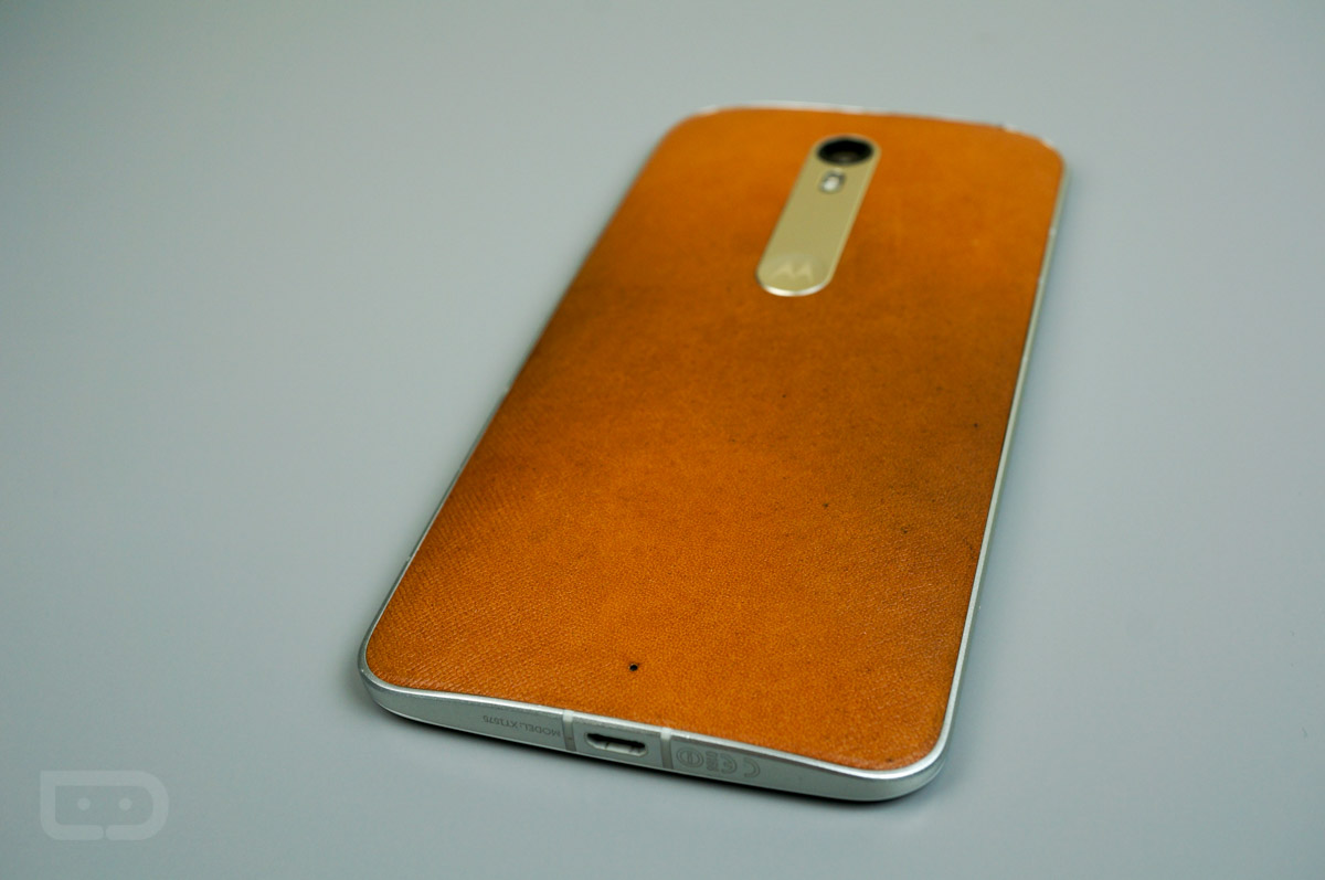 Not too shabby, right? Much like we saw on last year’s Moto X (2nd Gen), the leather is certainly starting to darken, soaking up all of those skin oils and elements from daily usage. At least to me eyes, I don’t exactly care for the texture Motorola decided to add on this year’s leather. If you look close enough to the grooves, it appears as if they are just dirty, not aging like fine leather.