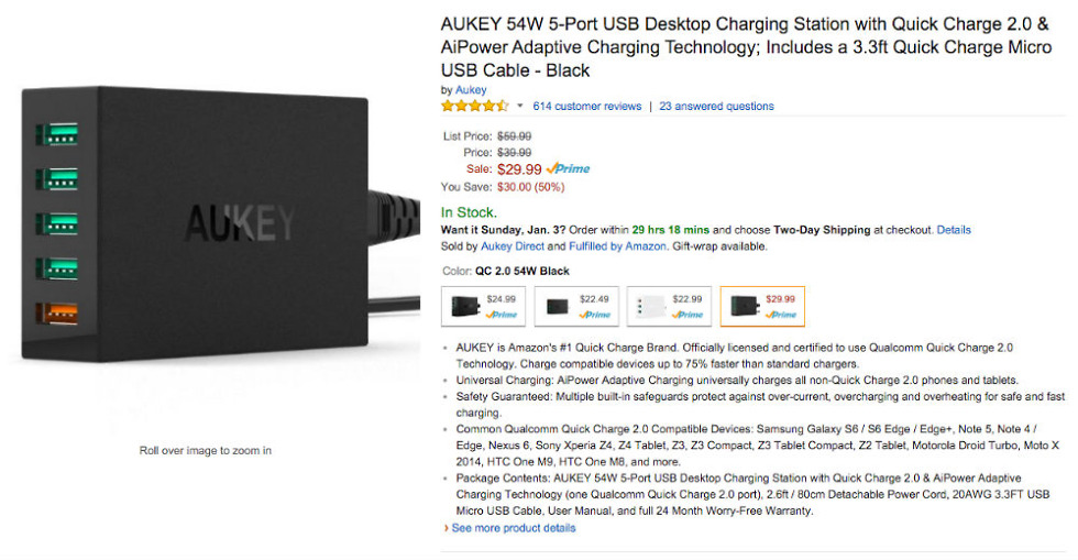 For a limited time, you can grab a supply of Aukey charging accessories through Amazon at a highly discounted price, thanks to a few coupon codes. At the discounted pricing, Aukey has a 5-port USB charger, regularly priced at $30, available for only $19 with the use of the coupon.