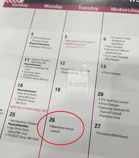 While the idea of someone photoshopping the below image seems unlikely, I will say that having the device named “BlackBerry Venice” on the calendar seems a little odd. By now, everyone in the industry knows that the Venice is the Priv, but who knows, maybe T-Mo enjoys using codes from time to time.