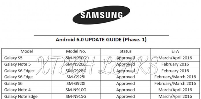 As seen in a portion of the leaked document, all devices have been pushed back rather significantly, with the Galaxy Note 5 and Galaxy S6 Edge+ now listed as receiving the updates some time in February. The Galaxy S6 and Galaxy S6 Edge have also been delayed, now listed as February/March. As for the Galaxy S5, that device is now listed to receive Marshmallow in March/April, instead of “awaiting approval” as it did in November, which is a good thing.