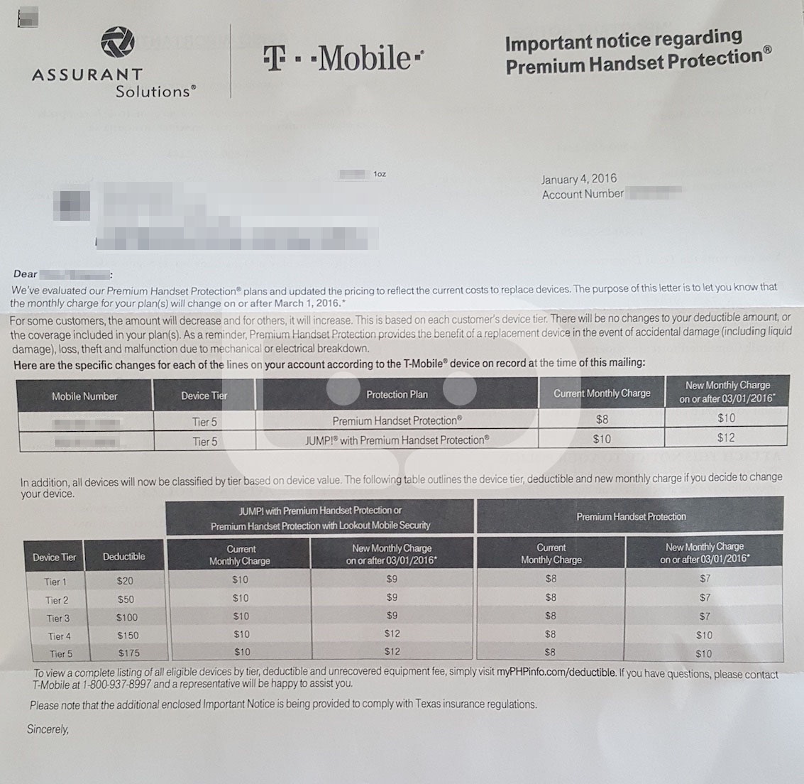 On March 1, customers participating in T-Mobile’s JUMP! upgrade program that currently costs $10 per month will either see a $2 dollar increase per month or a $1 reduction. According to letters being sent to JUMP! participants, T-Mobile is making the adjustments after they “evaluated” their Premium Handset Protection that is included in the JUMP! monthly fee.