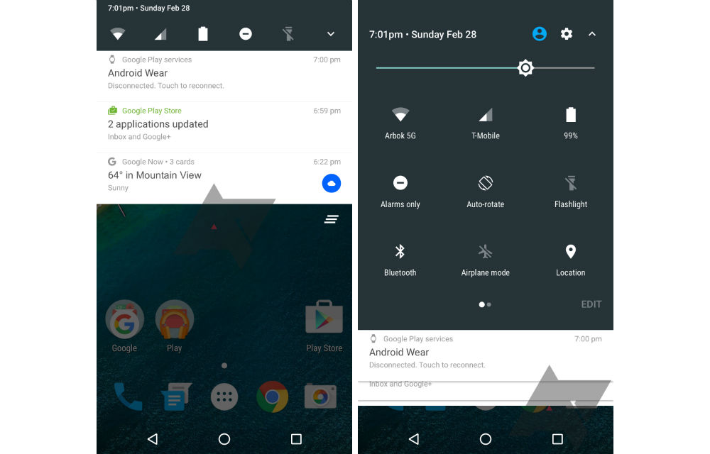 As for the settings panel, when you likely drag down twice or by tapping the dropdown arrow, you access settings for Airplane Mode, GPS, Bluetooth, and everything else. This same look is essentially what we already have with Marshmallow.