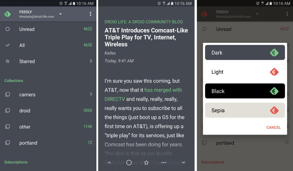 The developer behind Fenix, a very popular 3rd-party Twitter app, released another app to Google Play this week, one which looks to replace your Feedly app. Quote, available for free on Google Play, enhances the Feedly experience with vast sync options, settable themes, and much more.