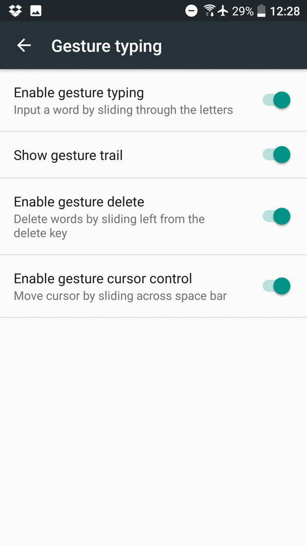 Outside of those tweaks and normal gesture typing, Google also added in the ability to swipe from the delete key to the left to highlight anywhere from one word to entire sentences in a text box. To try this out, type out two or three words, press the delete key and then continue swiping over to the left and you should see as each word is highlighted one by one. To delete, just lift up.
