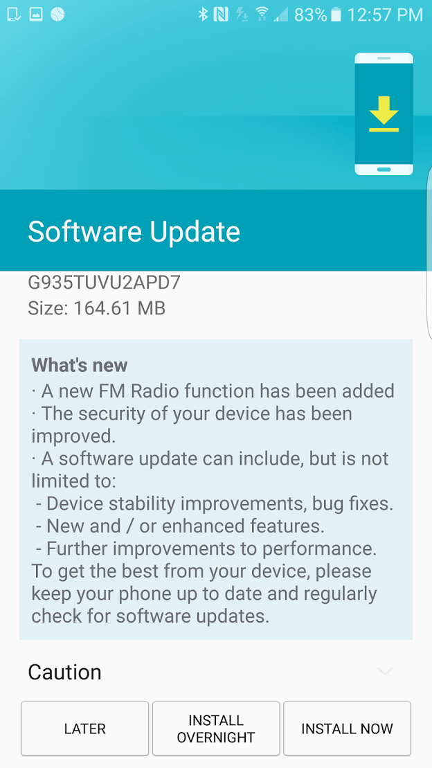An update out to the T-Mobile models of the Galaxy S7 and Galaxy S7 Edge today that not only includes “various system improvements,” but should fix power and volume key issues, assuming you were having them.