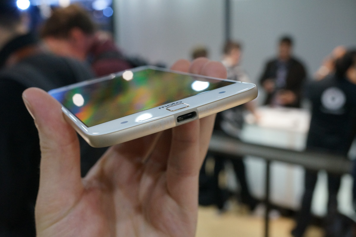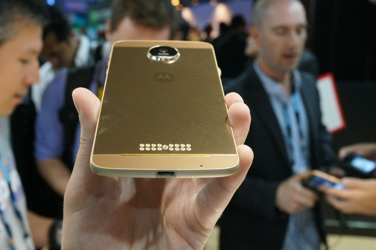 During Lenovo Tech World, we were able to go hands-on with all of the new products announced this morning. First, let’s go over the Moto Z, which is the standard flagship of the new lineup from Moto and Lenovo. You should already know the complete list of specs, but if you don’t, here’s a recap. The Moto Z features a 5.5″ QHD display, Snapdragon 820 processor, 4GB of RAM, 13MP rear-facing camera, 2,600mAh battery, USB Type-C fingerprint reader, and Android 6.0.1.