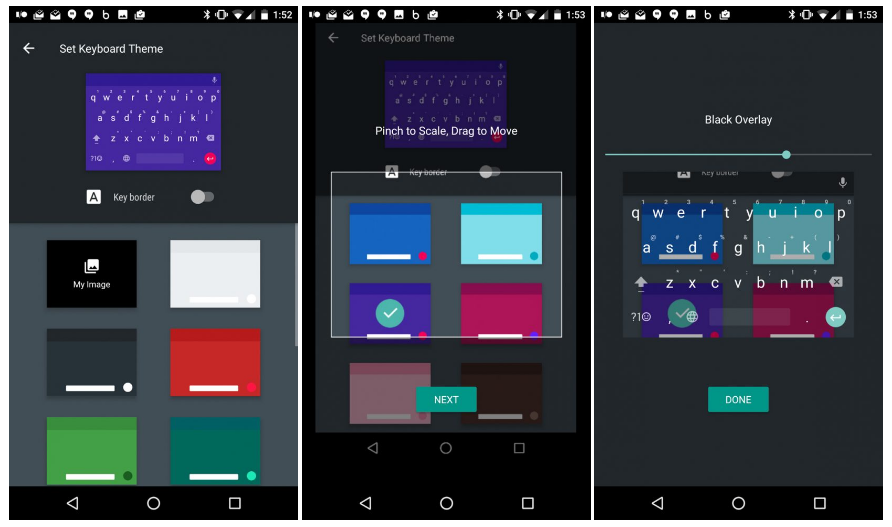 The update, which is stable v5.1, has a plethora of themes , along with the option to create your own custom keyboard with an image of your choosing. You can choose from the pre-made options or walk through a simple tutorial that allows you to not only choose an image, but frame it up and adjust the brightness as well.