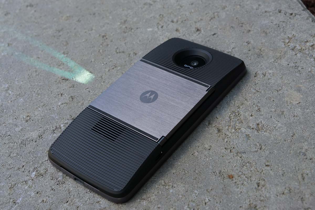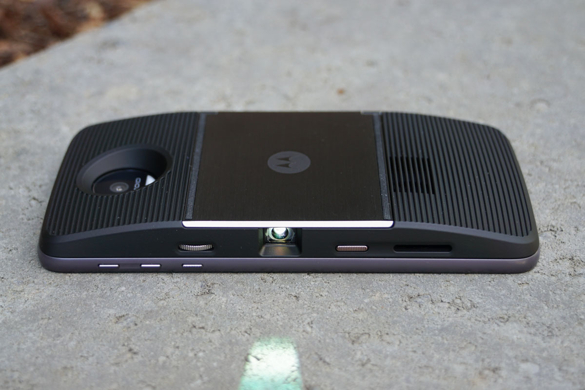 The projector that Motorola is selling as a Moto Mod is a fun idea, I just don’t know how practical it is for most of us. For one, it’s $300. Two, it’s low 480p resolution doesn’t exactly make you want to put up a movie onto a big screen or wall and enjoy with friends and family. I could see it coming in handy for meetings in smaller conference rooms or on a camping trip, where you want to have some fun in the tent, but other than that, it’s one of those meh accessories.