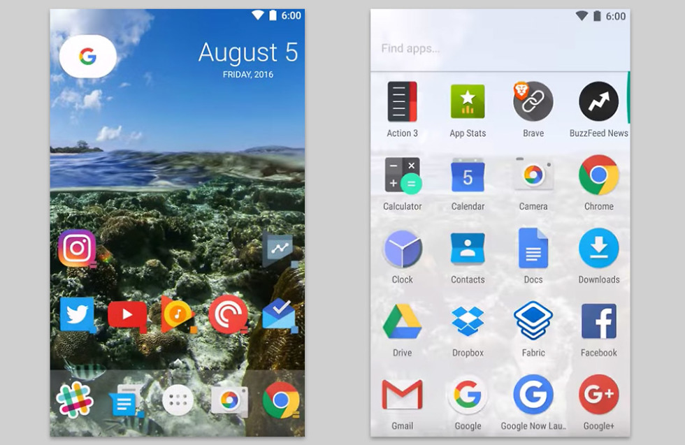 Through the update to the newest beta, users will have the option to enable the Nexus Launcher style app drawer that is accessed with a swipe-up. The feature is called “Nougat Style” even though this is the Nexus Launcher, so be aware as you go looking for it. The update also adds the Nexus Launcher page indicator style, dock place, and will let you use the Google “pill” button and date widget that you either love or hate.