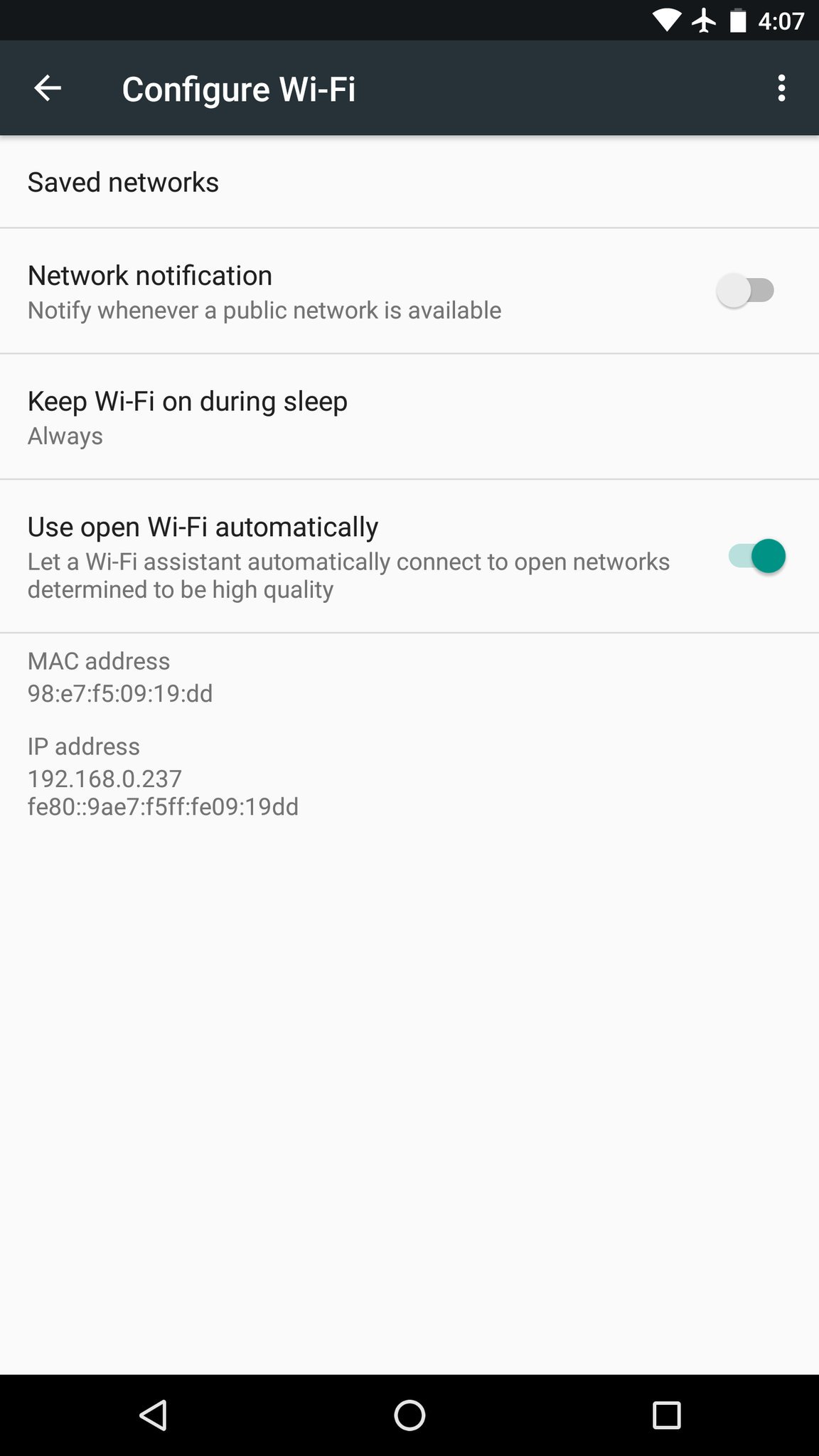 With WiFi Assistant, assuming you toggle it on, your Nexus will connect to open WiFi networks that Google has deemed as secure and reliable. That way, as you cruise into stores, malls, airports, or around town, you can alleviate some of the stress on your data plan and use WiFi without the hassle of logging in and all that jazz.