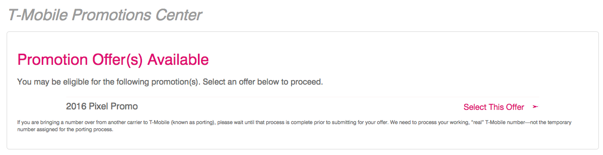 How does that work? It should work just like the program did last week, which means you head over to T-Mobile’s “validation site,” plug in some simple info including the promo code “PIXEL,” and see if you have the $325 credit available. Now, you do have to be on a Simple Choice Unlimited plan, so keep that in mind.
