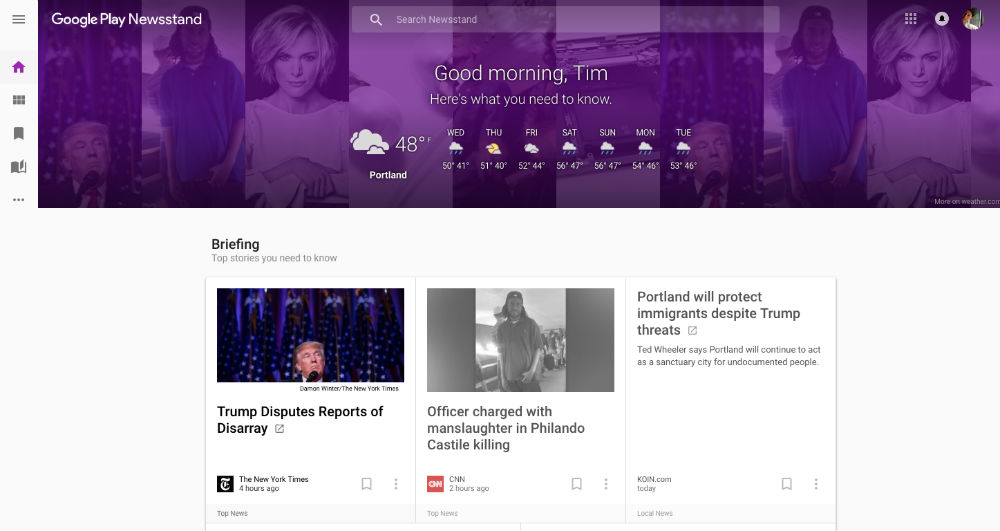 For those looking to use a more desktop-friendly experience, Google announced it has launched a web extension for Newsstand. On a desktop, you will find the same overall experience as you do on mobile, but with the design catered for larger monitors. In the header, you will find the local weather forecast, with all of your top stories right below in a horizontal layout.