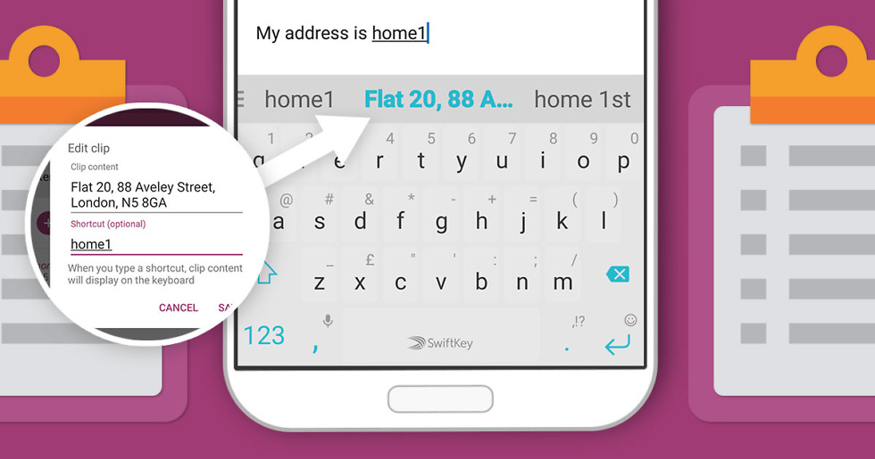 The three changes are part of SwiftKey Hub, the area where you manage all of your SwiftKey settings. For Clipboard, users can save phrases then copy and paste them into whatever they’re writing, without having to type it again.