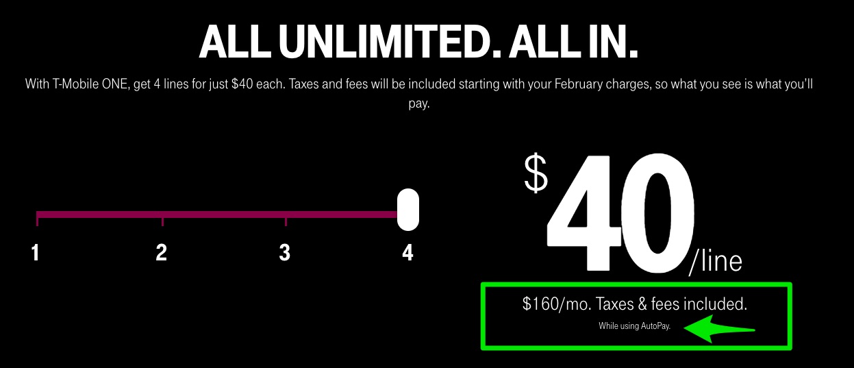 I should point out that you need to sign-up for autopay in order to get this flat rate pricing with the taxes and fees rolled in. I’m not sure what T-Mobile is charging you without autopay, but they make it clear in the fine print that it is a requirement.