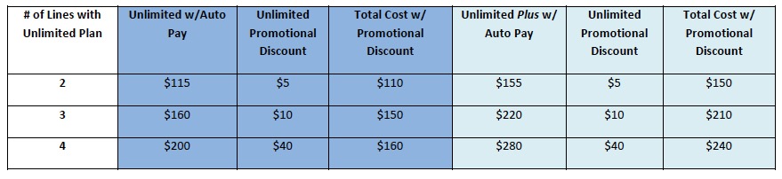 To kick off these new plans, US Cellular is also tossing in an extra promotional discount depending on the number of lines. This is a discount to go along with the Auto Pay discount. Here are those numbers: