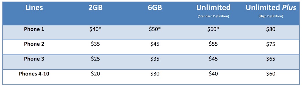To be precise, an entire new line-up of single line/non-shared plans will arrive in a couple of days under the title, Total Plans. There will be 2GB ($40) and 6GB ($50) options to go along with the Unlimited plan and its higher-definition friend, Unlimited Plus. You can see a pricing chart below, but the Unlimited Total Plan will start at $60 for a single line, with Auto Pay and paperless billing enabled. The Plus option starts at $80.