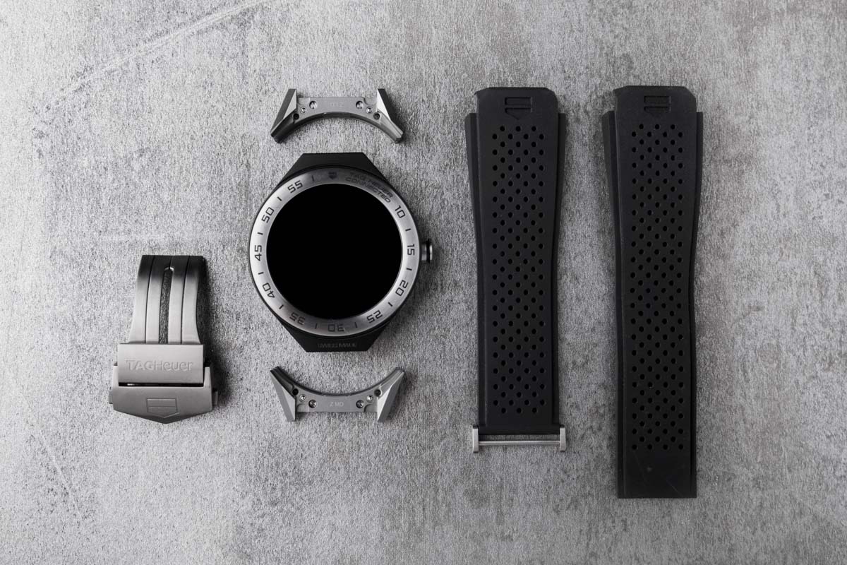 The Connected Modular 45 stands out because of that previously mentioned modularity. Instead of a 2-year swap-out program, like we saw with the original Connected, where owners get to trade-in their smartwatch to TAG Heuer, hand over another $1,500, and receive a mechanical watch replacement, the Modular 45 allows owners to do the swapping. The Connected Modular 45 can be turned into a mechanical watch by swapping out the Connected module for a traditional timepiece (sold separately), along with the lugs, strap, and buckle.
