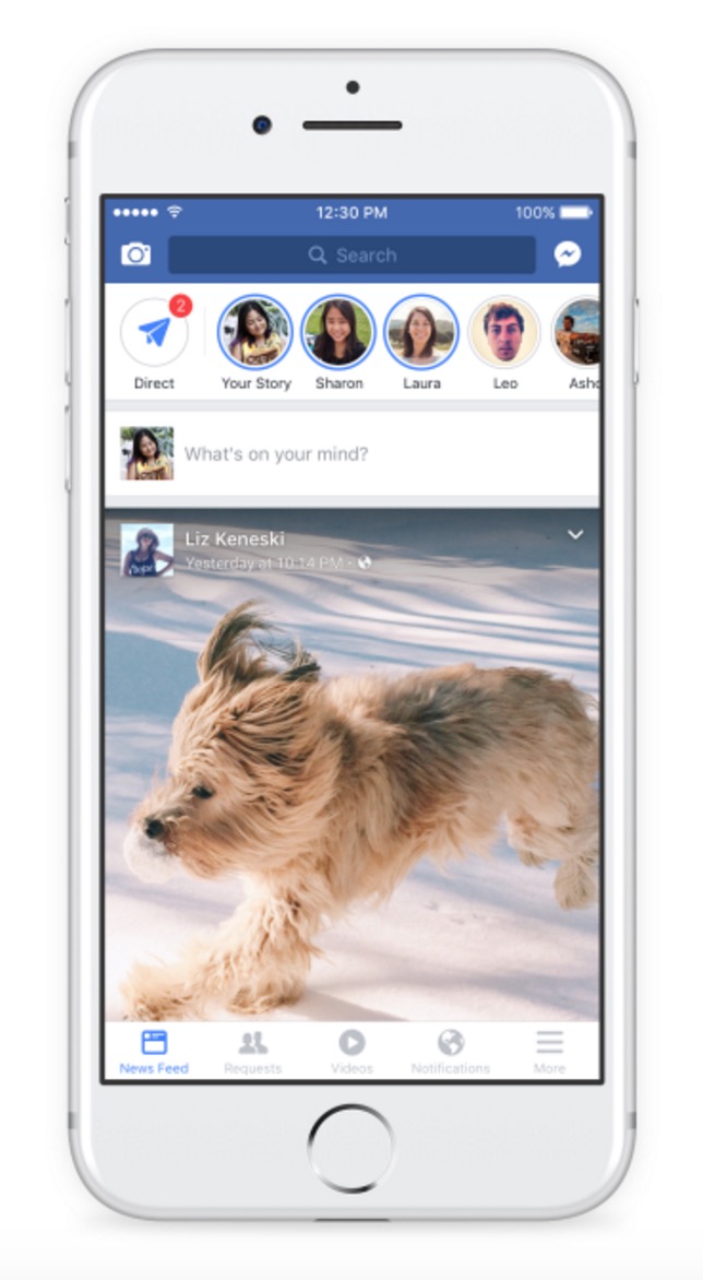 As for Facebook Stories, well, you know what this is. Like Instagram Stories, you get to add photos or videos to a storyline throughout a day to tell…a story. The story lasts for 24 hours and then disappears forever. Like Instagram’s version, you’ll see quick access to your story at the top of the app, along with those you follow on Facebook represented by little circle icons.