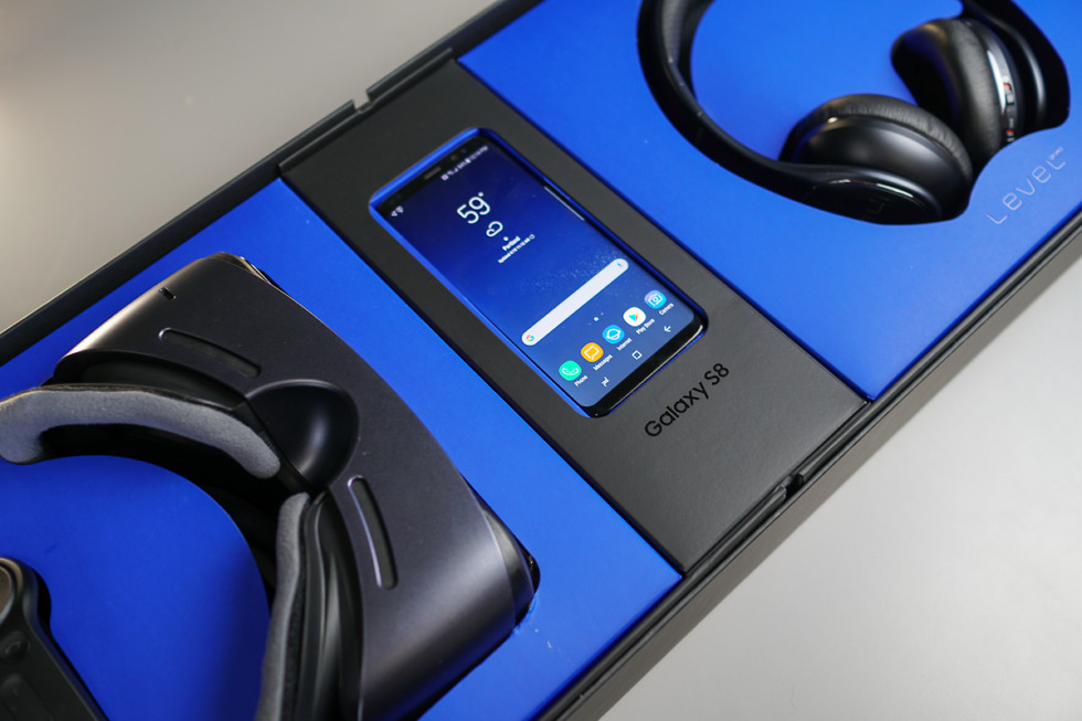 Inside, Samsung sent along a Galaxy S8, Gear VR with controller, as well as a set of Bluetooth Level headphones. Again, this package is not what you’ll find inside retailers on April 21 or what you’ll see if you pre-ordered the phone, but we wanted to share the experience with you regardless.