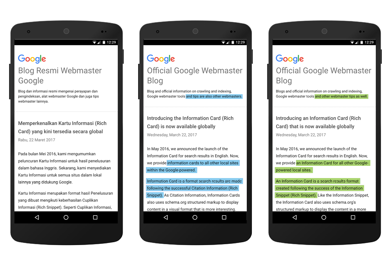 Detailed by Google, “Neural machine translation will be used for most pages to and from English for Indonesian and eight Indian languages: Bengali, Gujarati, Kannada, Malayalam, Marathi, Punjabi, Tamil and Telugu. This means higher quality translations on pages containing everything from song lyrics to news articles to cricket discussions.”