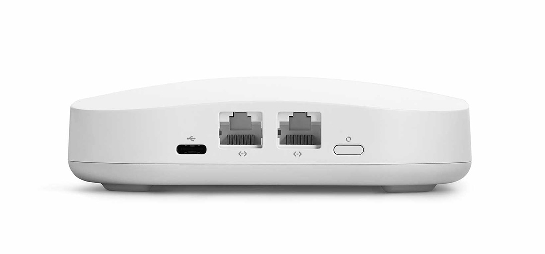 The new eero (2nd gen) also switches to USB Type-C for power, has a reset button that doesn’t require a pin or paperclip to press, and still contains the two auto-detecting ethernet ports.
