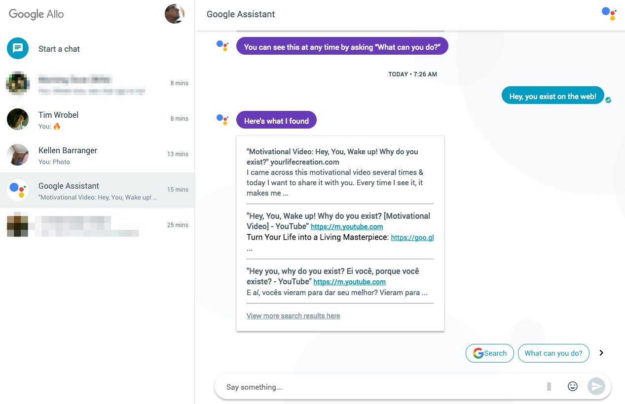 6. Once scanned, you should immediately see Allo sign-in on Chrome and be ready to chat with your synced conversations from the Android app. It’ll look like this.