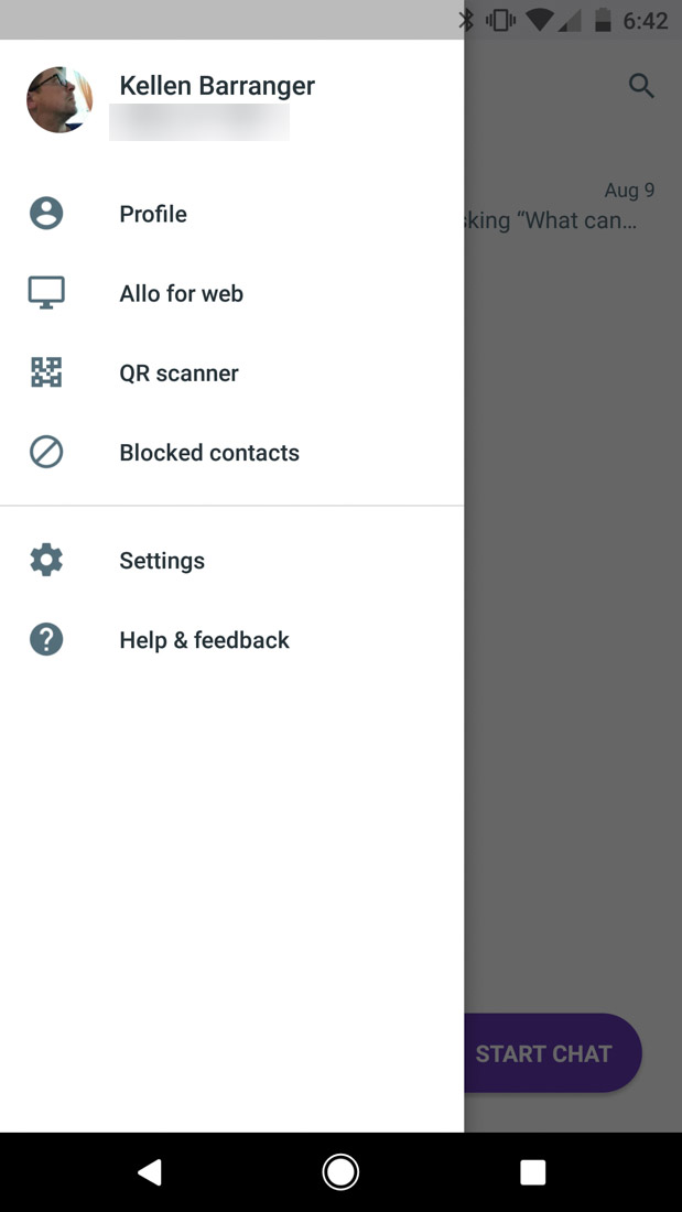 3. Once done, slide out the side menu in Allo to find the “Allo for Web” option