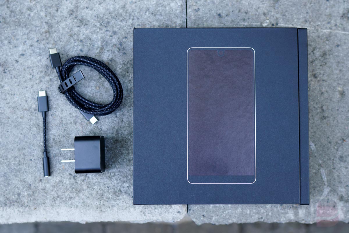 When your Essential Phone arrives, you get an all-black box with little branding. You, of course, know what the contents are, but like the phone itself, Essential has gone full-minimal, something I appreciate. As you dive into the box, it only gets better. First, you’ve got the phone, but next to it are the well-placed, premium charger, nylon-wrapped USB Type-C cable, and similarly finished USB Type-C to 3.5mm adapter. No one gives you accessories this nice.