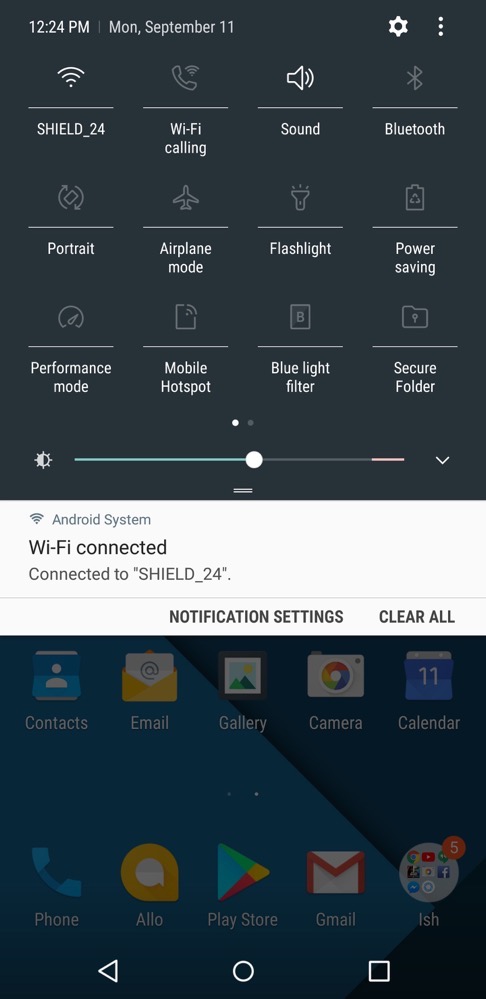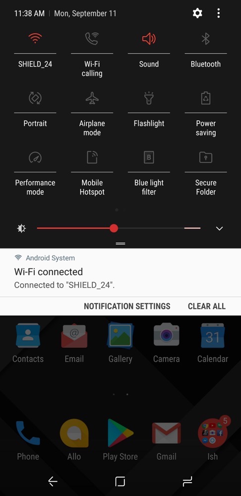 This might be my favorite out of the five. If you’re an MKBHD fan, then you’ll probably love it, too. It’s Red and Black, again featuring a Material Design appearance. The Settings menu is blacked out with Red icons, the pulldown is blacked out with a Red slider and icons, and all of the applications get a nice black look as well.