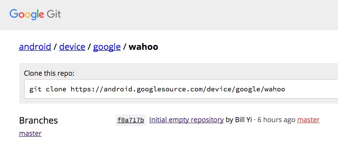 Those repositories are empty, but they are public. Are they supposed to be public? If so, what device is it? There is only a single mention of it in AOSP that I can find – the one we included in the screenshot above.