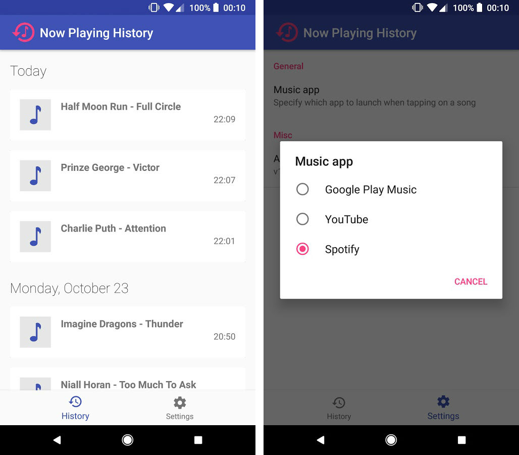 When you open the app, you’ll see a list of songs that have been recognized, then you can choose to play the songs from your music app of choice (Google Play Music, Spotify, etc.) It’s a pretty straightforward app, but one that seems totally necessary to have if you utilize Now Playing on your Pixel 2.