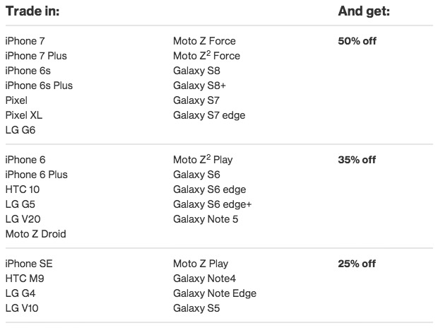 It’s one of those semi-sneaky deals where you have to trade in the proper phone to get the full 50% off, plus they then spread the 50% off discount out over 24 months to keep you locked to their network for the next couple of years. It’s a garbage move for the most part that almost all carriers are doing these days as a replacement to the 2-year service contract you used to sign. Now, they are doing everything in their power to get you to sign the 2-year device payment contract. With that said, if you really do plan to kick it with Big Red for the long haul then this deal isn’t all that bad.