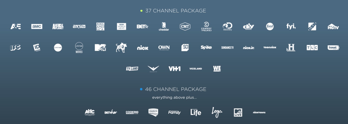 The channel line-up for each tier can be seen below. You’ll recognize the channels, because Philo has some good ones, like AMC, Food, HGTV, IFC, MTV, Nick, History, Travel, and VH1.