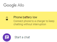 To help keep you connected, Allo for web has this neat little “Phone battery low” notification that pops up when your connected phone is about to die. We haven’t seen what the trigger is, but my guess is that the notification pops up around 15% or so on your phone.