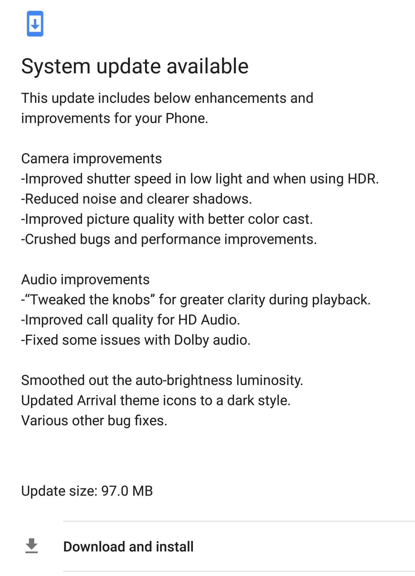 Listed in the changelog, users should see improved shutter speed in low light environments and when using HDR, should see reduced noise and clearer shadows, as well as improved picture quality with better color cast.