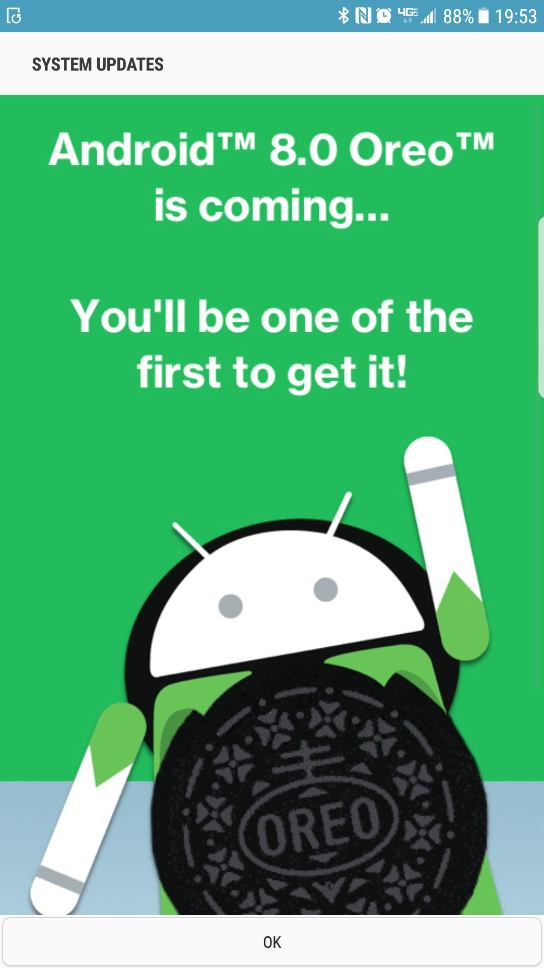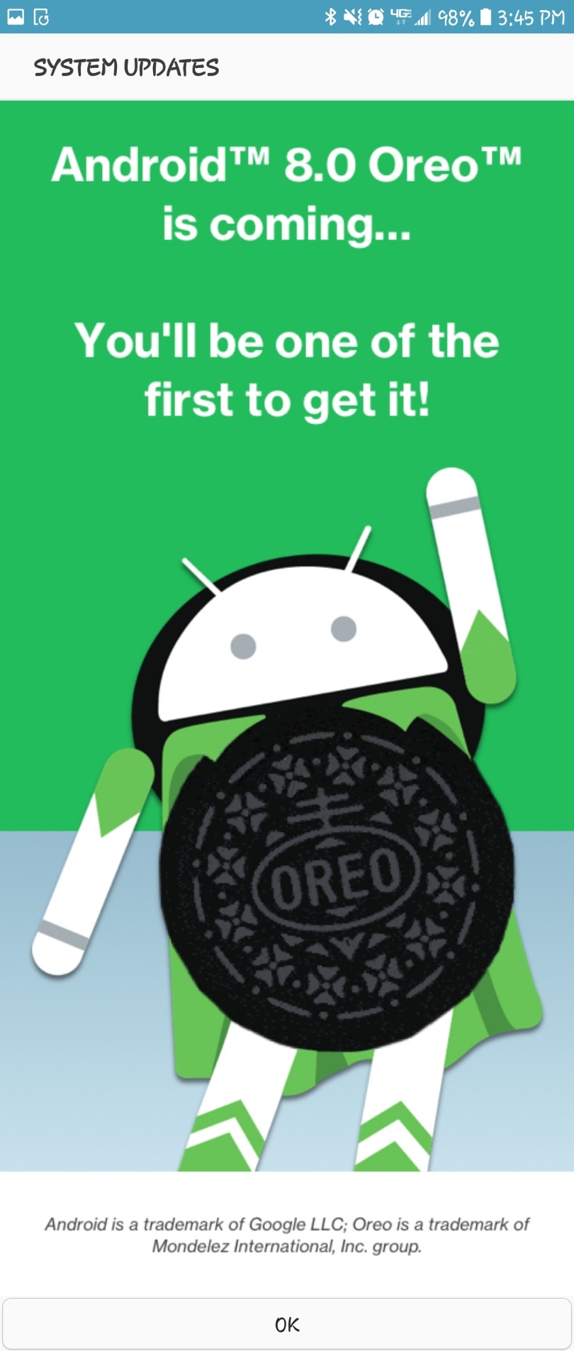 “We’re planning an Android 8.0 Oreo update for your device…It may take a while, so check back in a few weeks!”