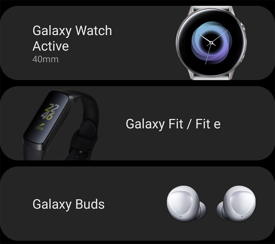 Samsung’s Galaxy Wearable app picked up a new update yesterday and it revealed all of the new wearable products that Samsung will announce next week alongside the Galaxy S10. The Galaxy Watch Active, Galaxy Fit and Fit e, and Galaxy Buds are all seen here, thanks to an early app update.