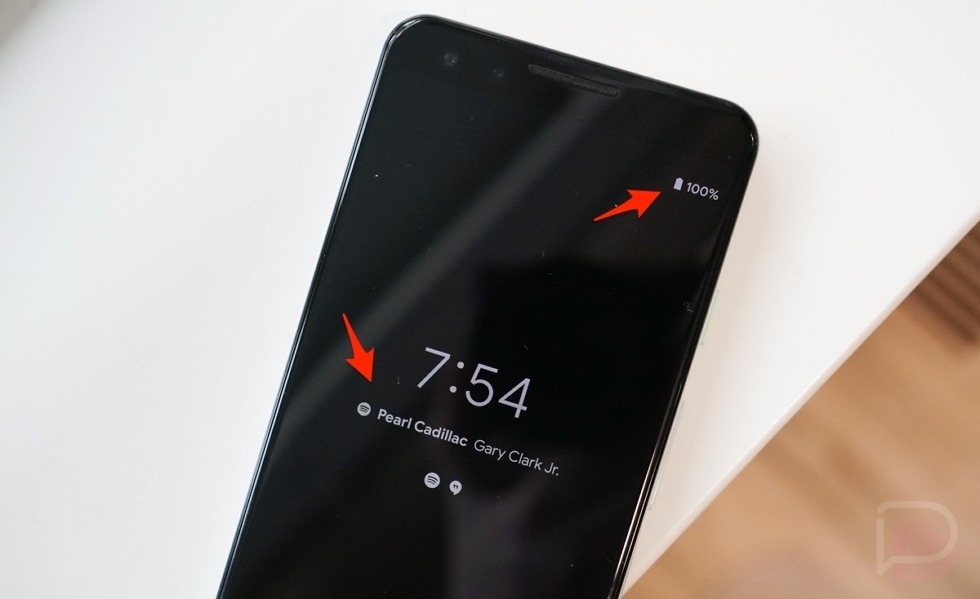 Always-on display now shows the song that’s playing on your phone and the battery percentage has moved to the top right. Cool.