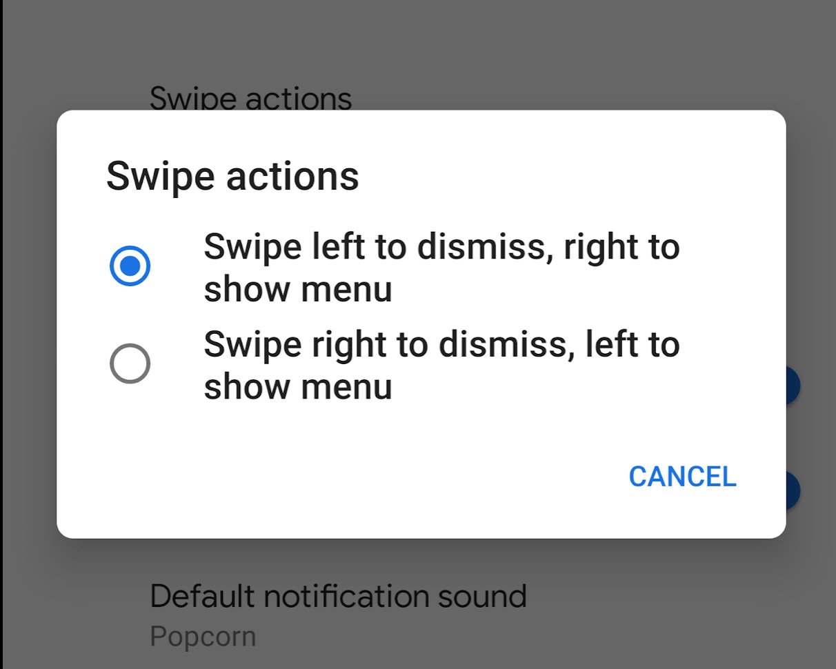 To change it (and you should to “Swipe left to dismiss…”), head into Settings>Apps & notifications>Notifications>Advanced>Swipe actions.