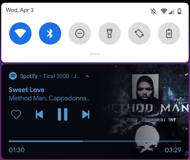 If you have media playing, the always-on display highlights those notifications and shrinks the clock, which isn’t ideal.