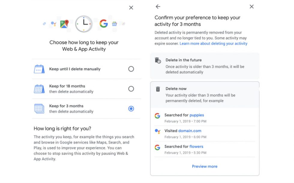 Manually going into your Google account and managing location history and activity data is already doable, though, it’s a hassle. Announced this week, Google is soon offering an auto delete function for all of this information, allowing you to remove data automatically after 3 months or 18 months.
