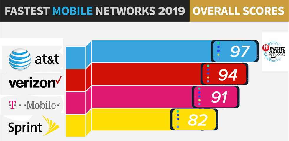 To put together these scores, PCMag drove all over the country, from city to city and state to state, running some 60,000 speedtests in the process on Galaxy S10 phones.