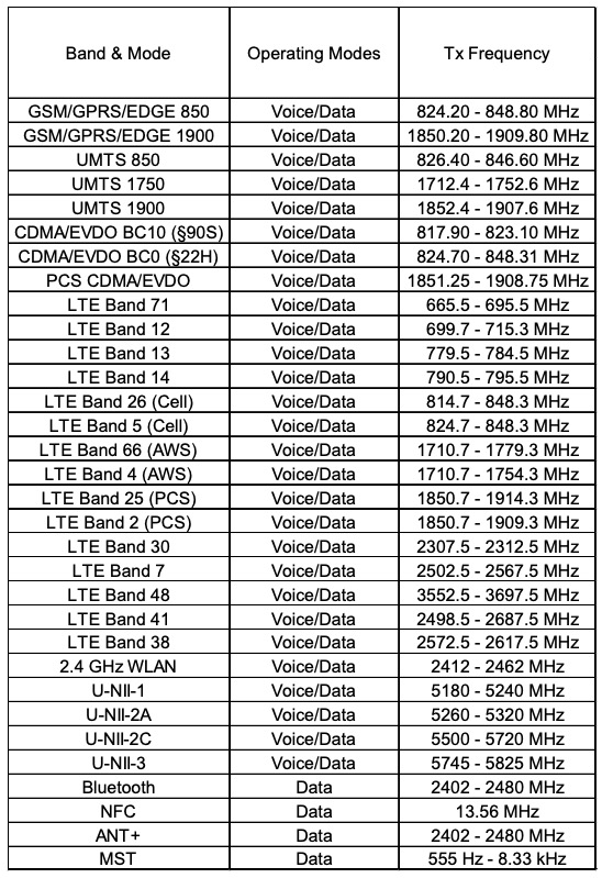 Not only do we have wide US carrier support, but NFC, MST, and Bluetooth are all there too. Those are not surprises, though.