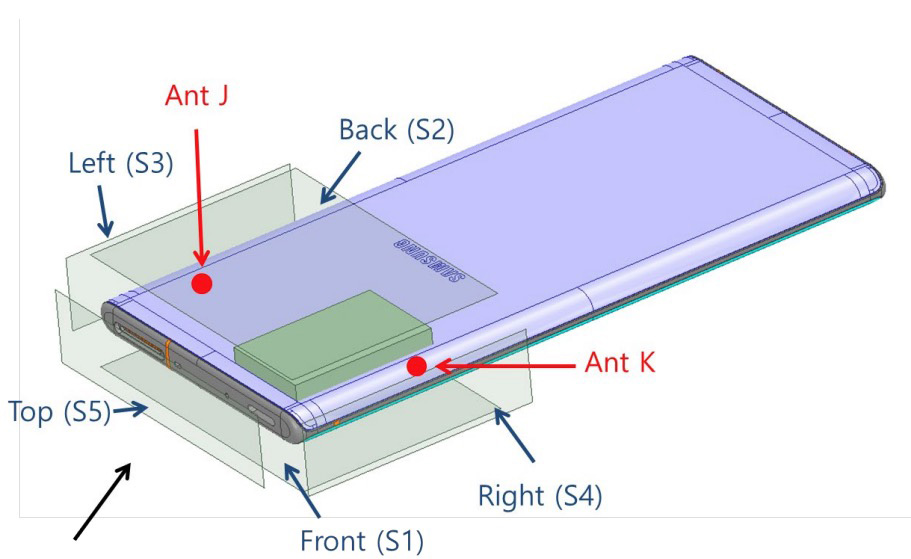 There is a whole new set of tests from the FCC for 5G, which is the cool part of this all. This particular filing shows a lot more detail in antenna placement, how much heat is produced by 5G, additional tests from both Qualcomm and Samsung, etc. We also get detailed 3D models like you’ll see at the top of this post and directly below. While they may not be official device pictures, they give you a couple of semi-clean shots of the Note 10.