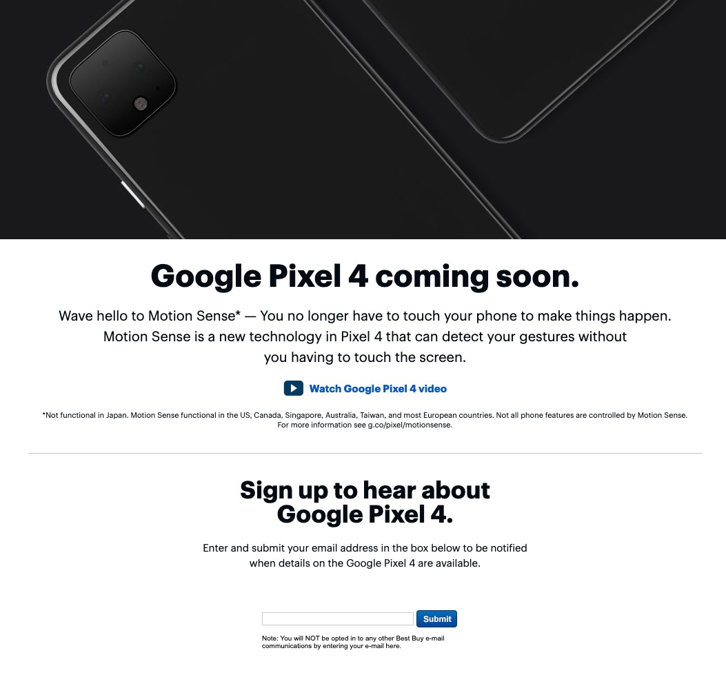 At some point, according to Best Buy, you’ll be able to go to g.co/pixel/motionsense to learn more about the Pixel 4’s Motion Sense, but that link is not yet live.
