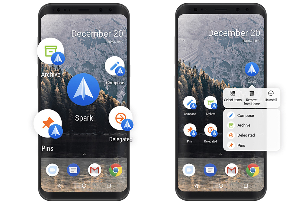 On a related note, you can now long-press on the Spark app to get to app shortcuts (below) that give you quicker access to your archive, composing of emails, delegated, and pins. Because this is Android, you can use those shortcuts as actual shortcuts on your home screen too. Just press and hold on items to drag them into place.