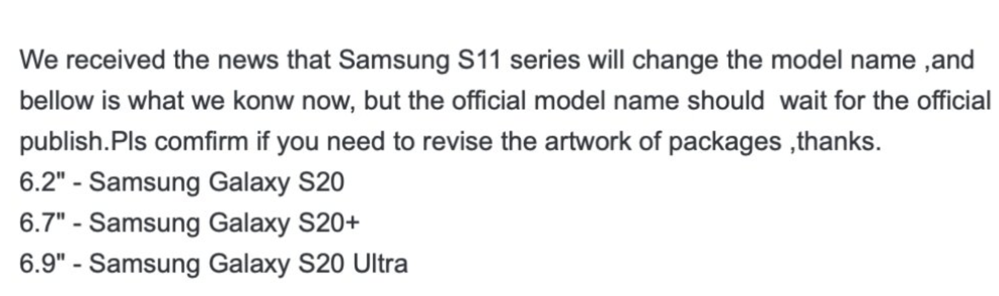 According to the founder of case manufacturer Schnail, a screenshot of a communication points to Samsung skipping Galaxy S11 through Galaxy S19, going straight to Galaxy S20 for the year of 2020. While we’ve heard wild things in our time, this sounds so crazy that it actually makes a ton of sense.