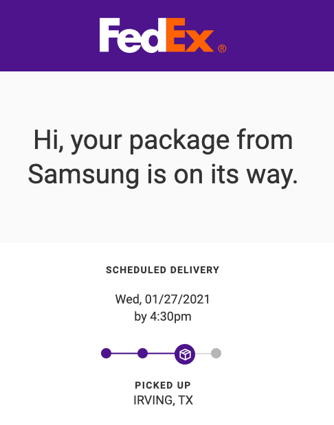 Notifications are rolling out to Galaxy S21 buyers that Samsung has shipped out devices. Confirmed by our own Galaxy S21 Ultra order, shipments have indeed left the building and could arrive as early as Wednesday, January 27.